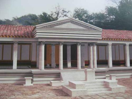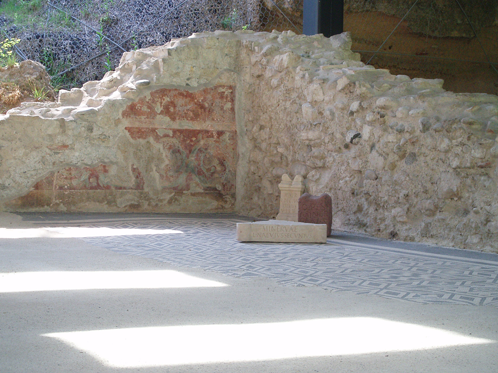 I resti monumentali scoperti nel 1986 e aperti al pubblico nel 2007, sono ora accessibili e fruibili al coperto di una bella struttura architettonica e valorizzati da un apparato didascalico in italiano e inglese. Sotto l’occhio vigile di Minerva il visitatore potrà ripercorrere, come duemila anni fa, gli spazi del culto e del rito ai piedi dell’altura da cui sgorgava l’acqua sacra. Il santuario romano dedicato a Minerva fu un luogo di culto ma anche sede d’incontro, di scambio, di controllo della viabilità. Strutturato in età Flavia (69-96 d.C.) secondo il canone del tempio italico, è composto da un corpo centrale, collocato su alto podio cui si accede tramite gradinate, e da due ali laterali porticate che si protraggono verso il fiume delimitando un ampio cortile scoperto. L’ambulacro sul fronte si allarga davanti all’aula di culto a formare un pronao monumentale. L’aula centrale, che ospita nella parete di fondo una nicchia sopraelevata per la statua di Minerva, è affrescata da girali e finte crustae marmoree e ha come pavimento un mosaico a tessere bianche e nere con motivi geometrici. Vasche, fontane e statue nel cortile abbellivano l’intero complesso.